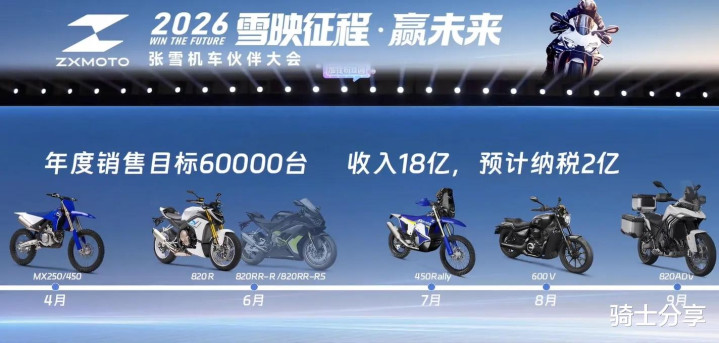 说了这样多,小伙伴们所温雅的无非是本年张雪机车会有哪些新品发布,据悉,从3月份开动张雪果然每个月齐会推出新品,其中包括3月份上市的820RR、4月份的MX250/450、6月份的820RR赛说念版、7月份的450Rally,8月份的600V、9月份的820ADV、以及12月份的350林说念越野野心七款。