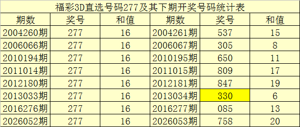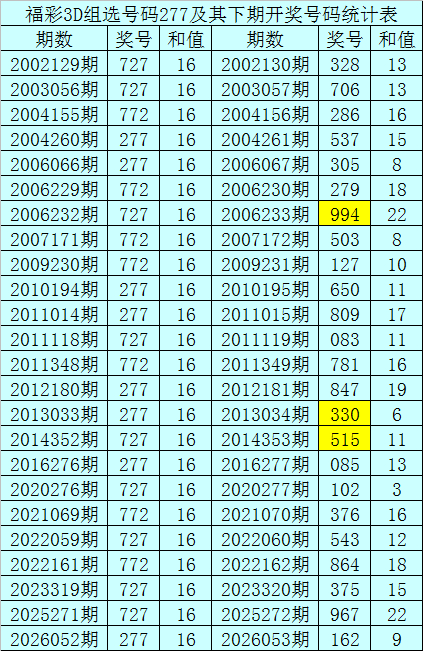 二、组选分析:历史上组选号码277开出了24次,其下期奖号分裂为:328-706-286-537-305-279-994-503-127-650-809-083-781-847-330-515-085-102-376-543-864-375-967,其开出期数和下期奖号统计为: