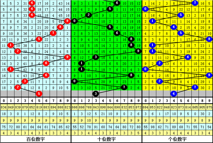 4、组选号码012路比为30:17:37,其中0路号码轮空4期,1路号码轮空9期,2路号码轮空4期,本期012路比参考1:1:1组合。