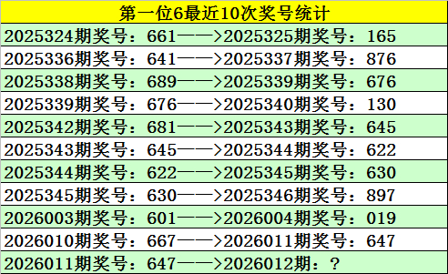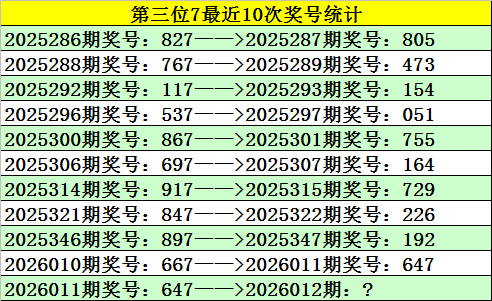 上期回顾:福彩3D第2026011期奖号647。和值17,跨度3,大小比2:1,奇偶比1:2。