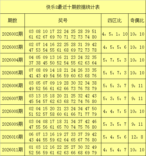 快乐8第2026011期开出奖号:01 03 12 16 22 25 27 30 32 49 52 56 59 61 62 63 66 68 69 79,其中奖号和值为852,跨度为78,012路比为7:8:5,四区比为4:5:4:7,奇偶比为10:10。