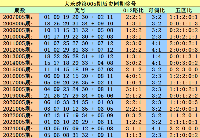 上期开奖:大乐透第2026004期开奖:05、18、23、25、32+05、09,前区012路比为1:1:3,奇偶比为3:2,五区比为1:0:1:2:1,大小比为4:1。