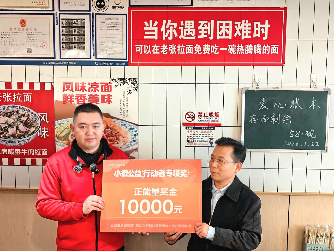 去年,成奶仓递交了入党申请书,希望把“免费吃面”的承诺通过街道公益平台送给更多人。如今,这份心愿正在落地。“朝外伴儿”平台为此特别开辟了橙公益“爱心面”通道,“朝阳门外”公众号也将协助“老张拉面”定期公示“存面”名单,这就像把面馆里那本“良心账本”搬到了线上,让凡人善举被看见、被延续。此外,朝外街道还将继续通过“送你一朵小红花”等行动,主动发现、培育和支持更多像“老张拉面”这样富有社会责任感、热心社区服务的暖心商户与个人,让散落在街角巷尾的微光相互照亮。