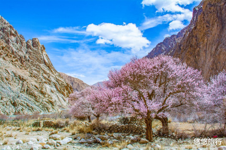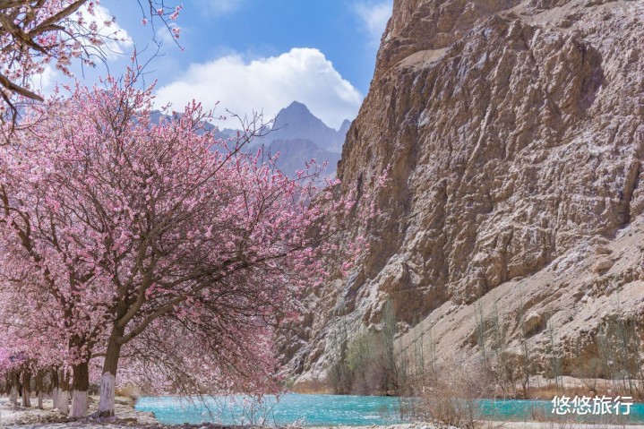 车轮碾过塔县古道,南疆的春天,整片山谷的粉白。